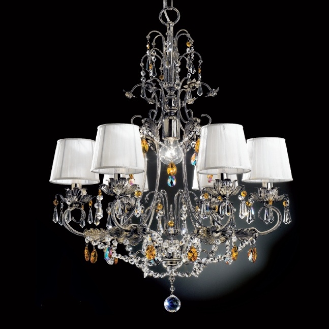 FINISAJE: ALAMA PLACATA CU ARGINT ANTICHIZAT SI CRISTALE SWAROVSKI, CU ABAJURURI DIN MATASE ALBA