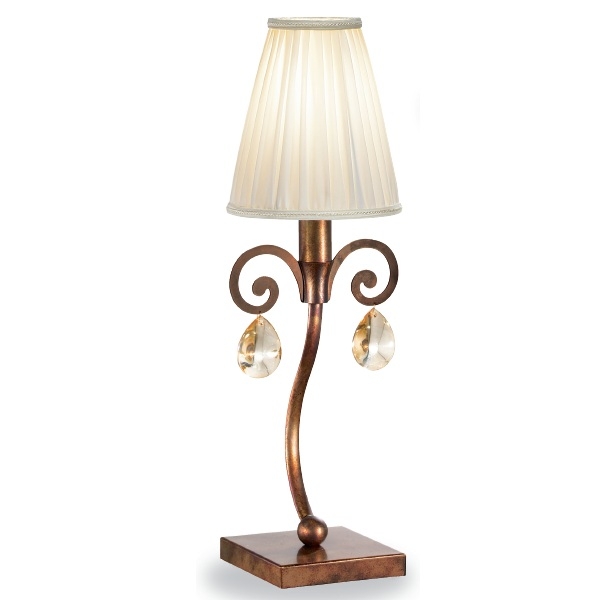 FINISAJE: ALAMA PATINATA BRUN-BRONZ, CRISTALE SI ABAJUR DIN MATASE